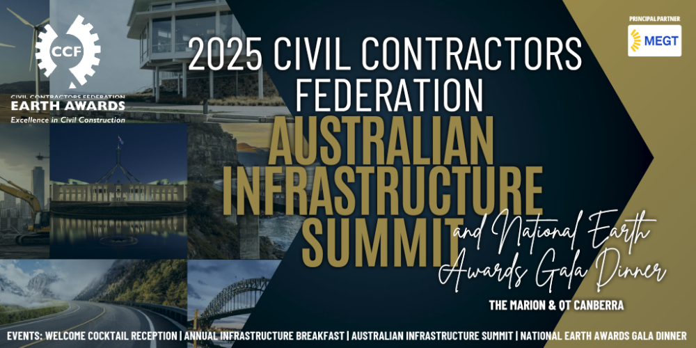After a very successful return of the event in 2024, the Civil Contractors Federation, in partnership with our State Branches, is proud to announce the CCF Australian Infrastructure Summit, held alongside the National Earth Awards in Canberra from 27–28 November 2025.